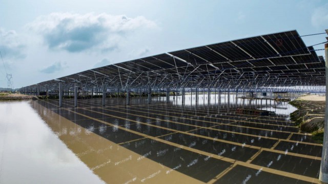 柔性支架具有大跨度、、、、高净空,,,,耗材少的特性,,,,吸引了诸多厂商的参与,,,,除固定龙头国强兴晟能源之外,,,还有中信博、、品尚、、、、光翔、、华成电力等企业,,,,此外渔光电站龙头通威新能源也自己开发了柔性支架,,,并应用在自己的渔光项目中。。。